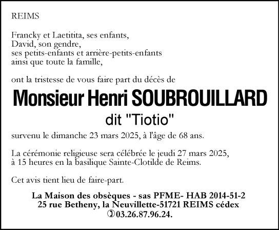 Décédé à Reims (51100, France) le dimanche 23 mars 2025 à l'âge de 68 ans