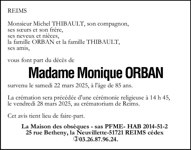 Décédée à Reims (51100, France) le samedi 22 mars 2025 à l'âge de 85 ans