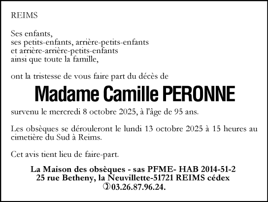 Décédée à Reims (51100, France) le mercredi 8 octobre 2025 à l'âge de 95 ans
